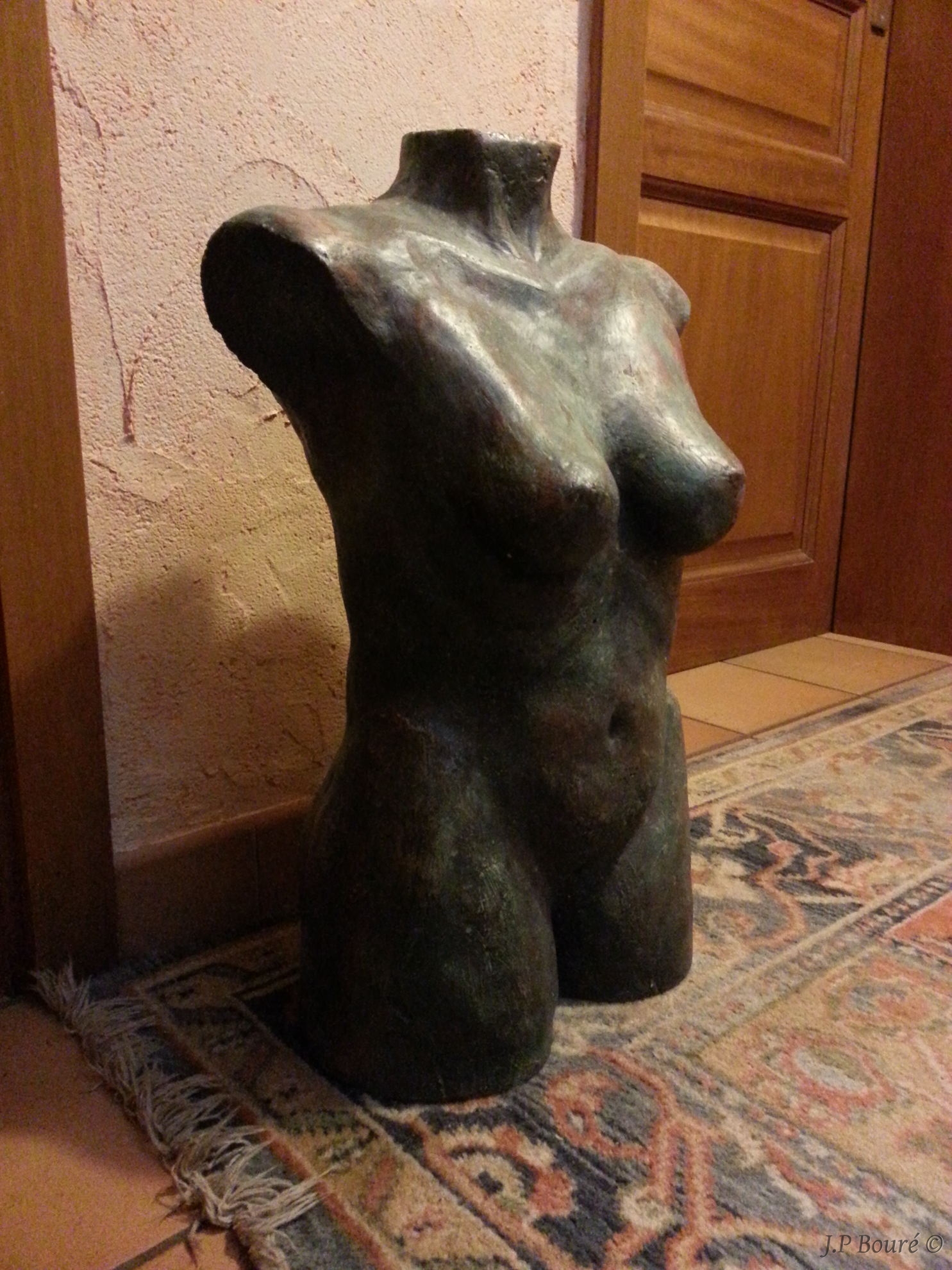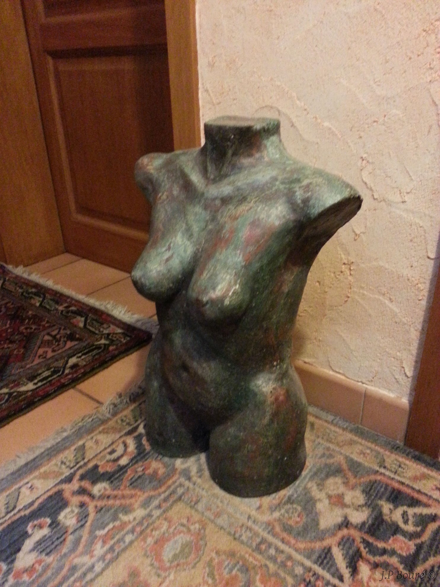 Buste en béton patiné (peintures diverses, pigments & cire incolore)